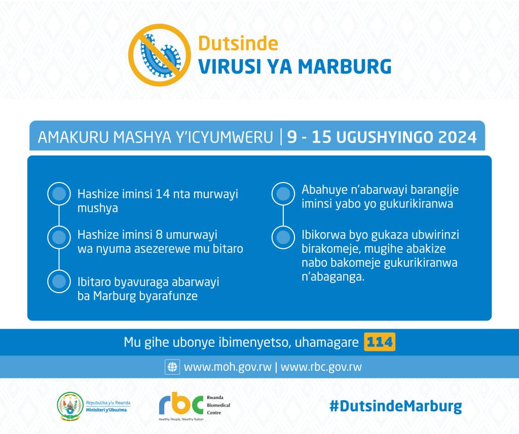 Ni itangazo rigaragaza amakuru mashya kuri virusi ya Marburg, kuva tariki 9-15 uku kwezi.