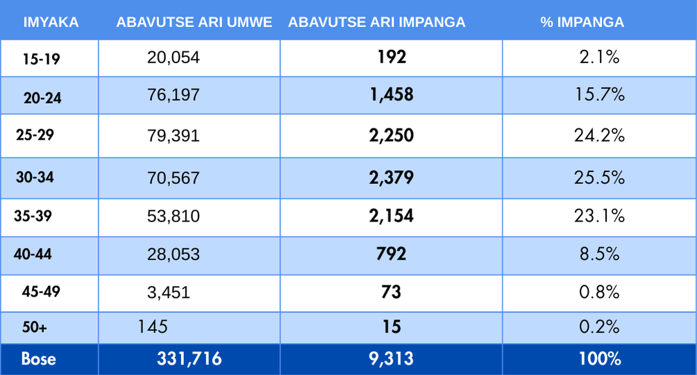 Iyi raporo yasohotse muri uku kwezi kwa Kane 2025, igaragaza ko abana benshi b’impanga bavutse ku bagore bafite imyaka y’amavuko iri hagati ya 30-34, bangana na 2,379, mu gihe abacye bavutse ku bafite imyaka 50 kuzamura, bangana na 15.